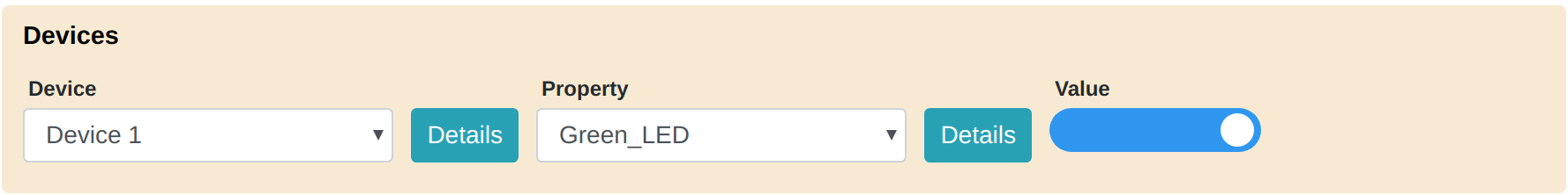- Select Device = Device 1, Property = Green_LED, and set to "on" (i.e. 1).